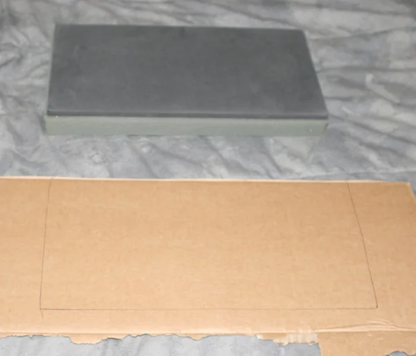 If you have army transport trays already you can trace the bottom of on onto a piece of cardboard. Otherwise trace out a rectangle 13”x7.5” and cut it out.