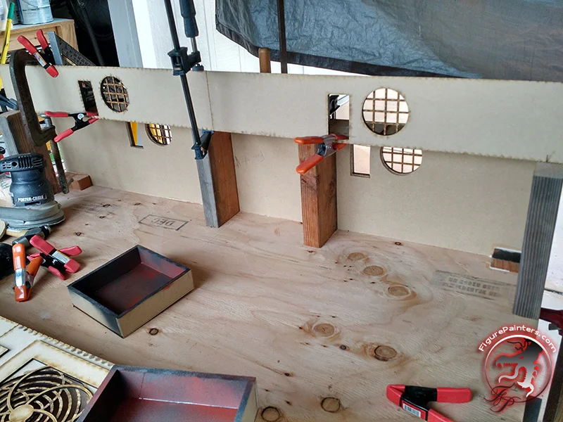 I used some clamps to help align the edge of the top 2nd level with the face below while the glue dried.